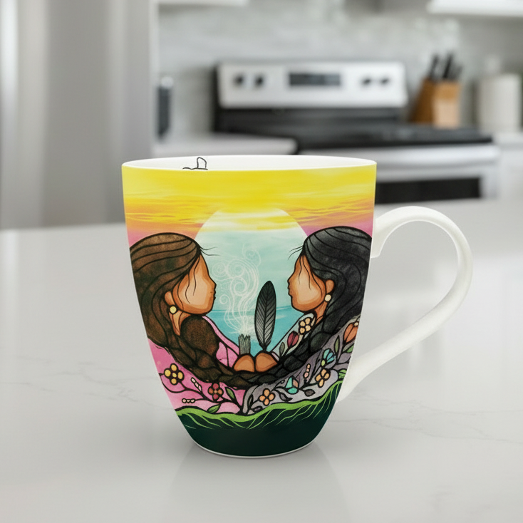 Hold 18 oz of pure artistry in your hands with this Signature Mug, where playful mornings meet meaningful impact. Genuine Indigenous designs transform your daily brew into a celebration of culture and creativity. Tough enough for the dishwasher and microwave, yet precious enough to display. Every sip supports the artist directly through fair-trade royalties. Unwrap the full story: artist biography, portrait, and authentic signature nestled in premium gift packaging. This isn't just a mug—it's a daily reminder that beauty and purpose belong together.