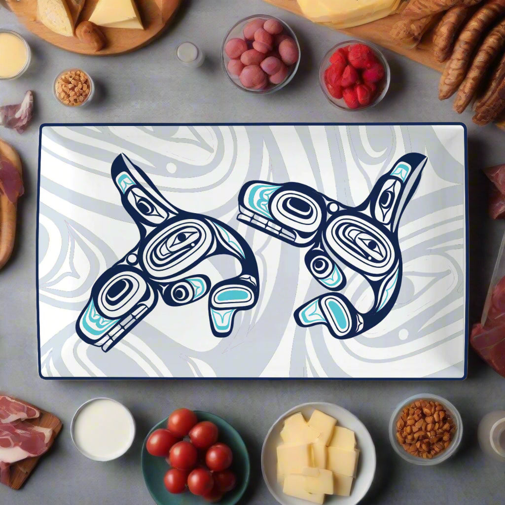 Elevate your dining experience with our Platter - Whales. Adorned with stunning Indigenous designs, these microwave and dishwasher safe platters harmonize perfectly with our other tableware pieces. Create a rich and elegant atmosphere with the perfect combination of aesthetics and function.