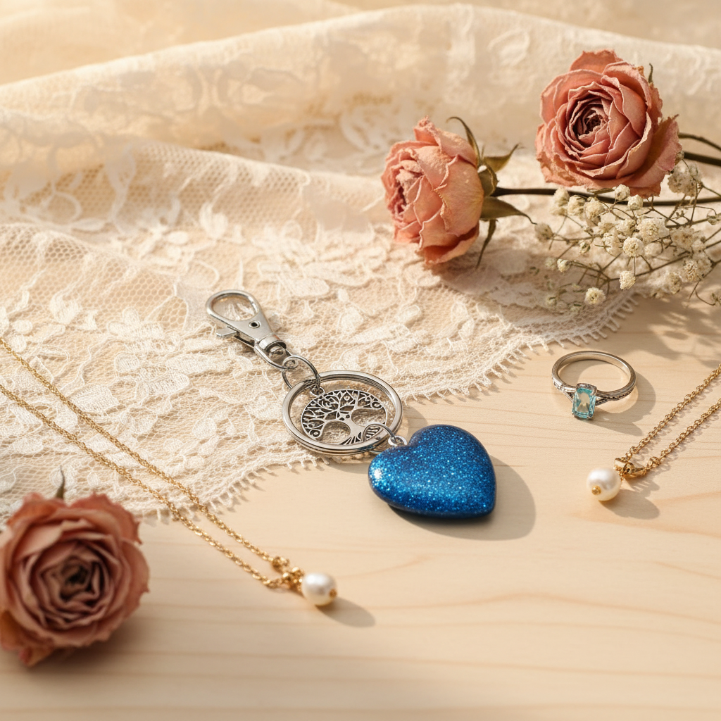 Royal Blue Heart Tree of Life Keychain - Hand-Poured Epoxy Resin