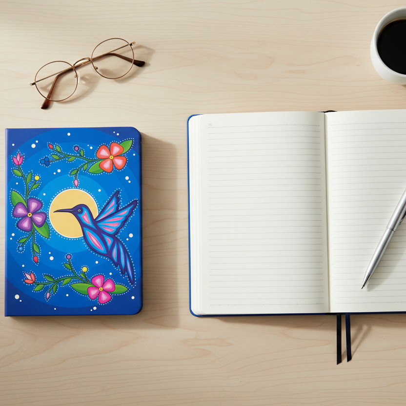 Transform everyday moments into meaningful memories with this stunning Nenookasi journal, featuring authentic Indigenous artwork by Marissa Indoe.