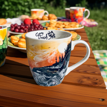 Each Fine Porcelain mug comes with a specially designed box that features the artwork and its descriptions.  Each Mug has a Beautiful Artist Signature Inside the Mugs.  These would make beautiful Gifts or Beautify Your Kitchen....