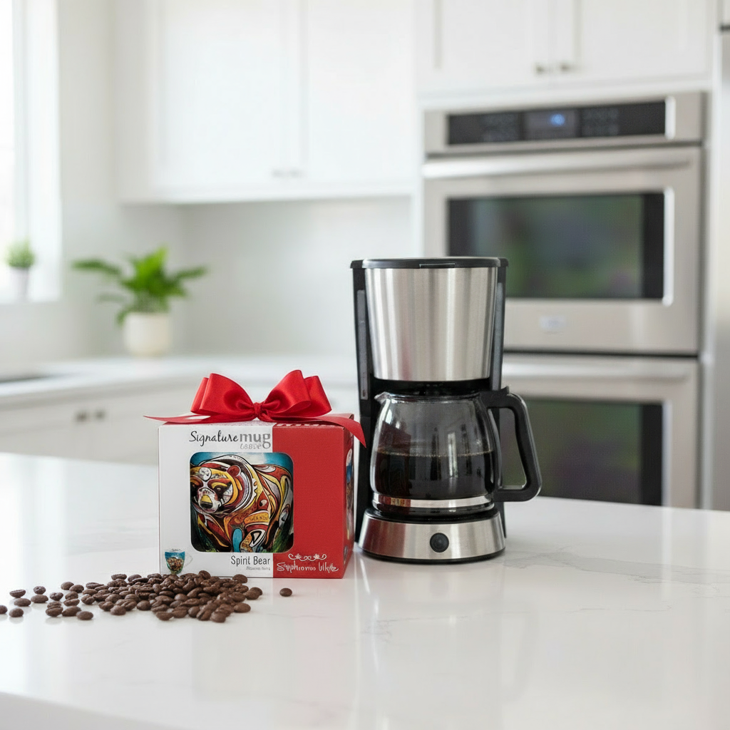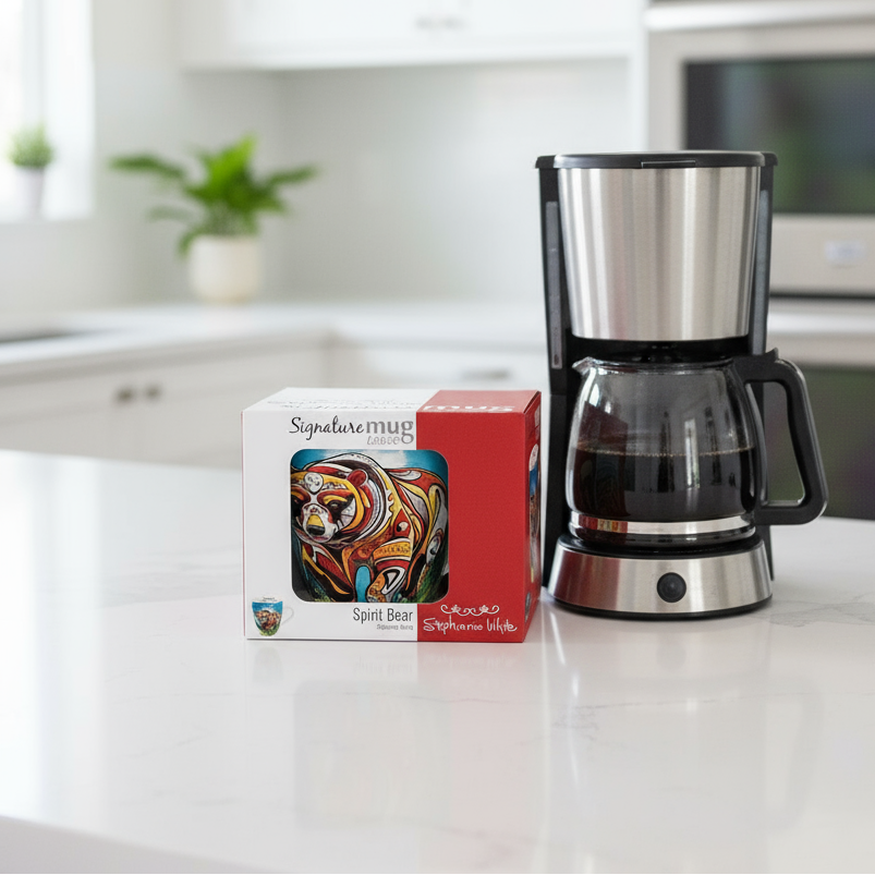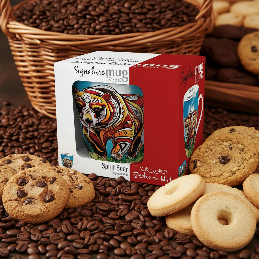 This 18 oz signature mug brings together exceptional design and cultural integrity, featuring Stephanie White's original Spirit Bear artwork rooted in Indigenous tradition. The thoughtfully curated presentation includes a premium gift box and artist biography, creating a complete gifting experience. By choosing this mug, you directly contribute to the artist's success through royalty payments, supporting ethical creative partnerships. Perfect for discerning gift-givers seeking products that blend aesthetic appeal with meaningful cultural representation and artisan recognition.