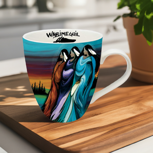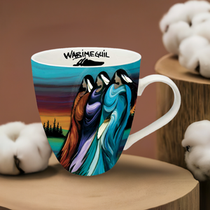 Elevate your morning routine with our 18 Oz Signature Mugs - Three Sisters. Made from fine China and designed in Canada with authentic Indigenous designs. Showcasing the artistic talent of our indigenous artists, each mug comes in a gift box with an artist bio and picture. Microwave and dishwasher safe, this mug is a perfect blend of functionality and luxury.