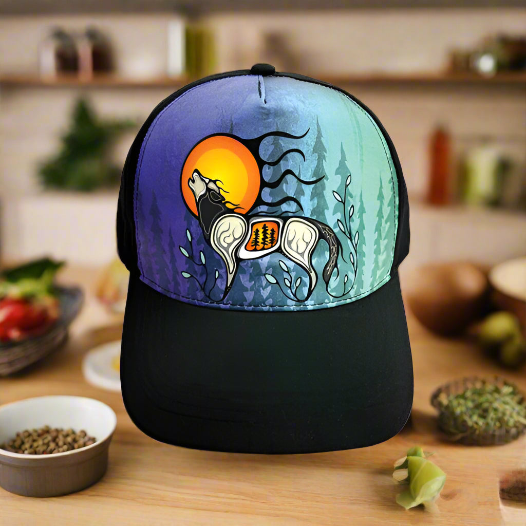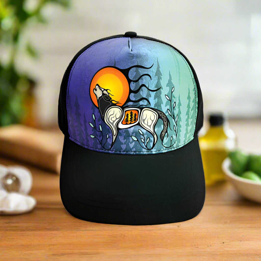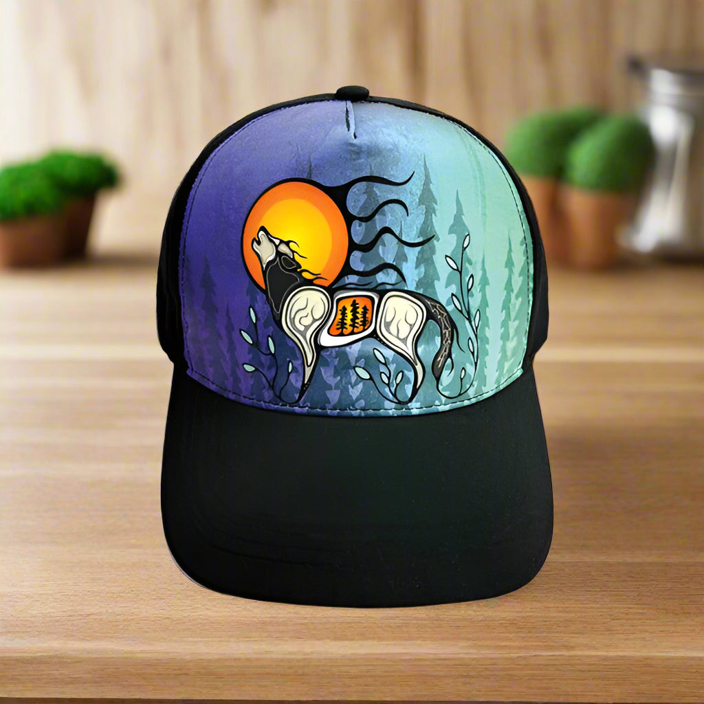 Elevate your style with the Native Northwest Water-Repellent Adjustable Cap -Wolf. This must-have accessory is perfect for all your outdoor adventures, with lightweight and breathable fabric that's also sun-proof. The adjustable strap guarantees a comfortable fit, while the water-repellent construction provides coverage rain or shine. Featuring stunning Indigenous art, this cap is both practical and fashionable.