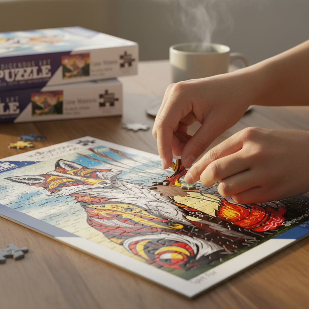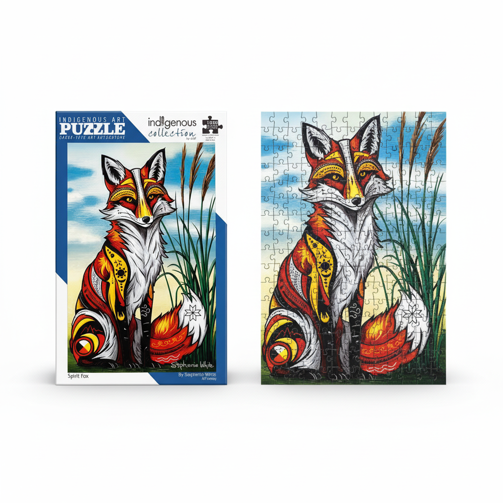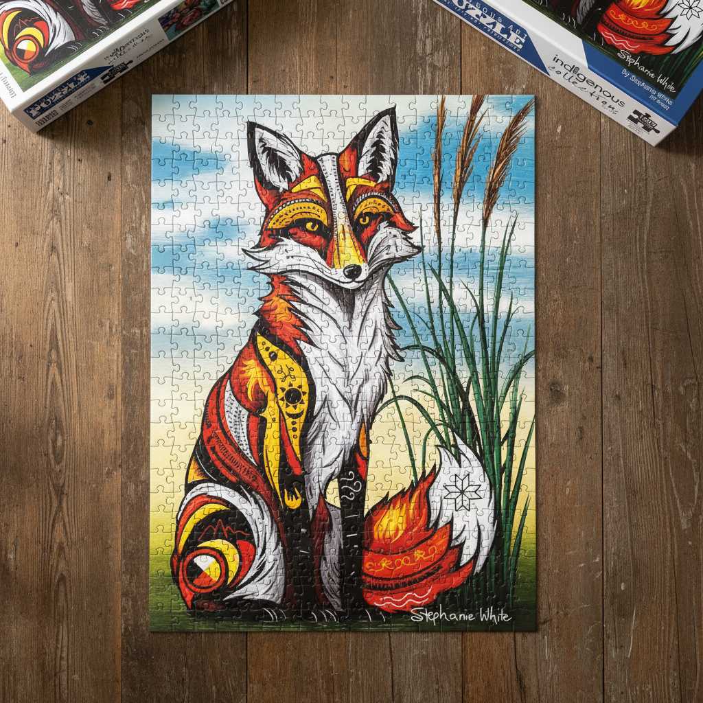 Bring the magic of Indigenous art into your home with this beautiful 1000-piece puzzle featuring Spirit Fox by artist Stephanie White. Captivating and full of spirit, this puzzle is a joy to assemble and a stunning piece to display when complete.