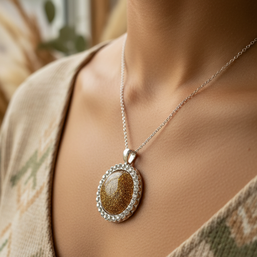 Express your bold style with this eye-catching handcrafted pendant. Journey of Courage features a stunning epoxy resin pendant with vibrant sparkles, designed to make a statement wherever you go.