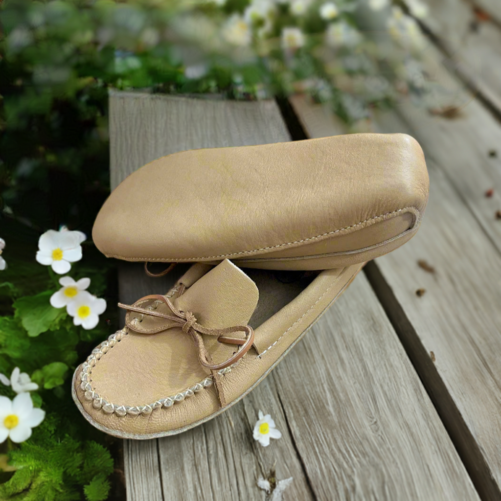 Experience genuine moose hide luxury that combines centuries-old traditional techniques with modern comfort. Each pair is a testament to the skill and heritage of Huron-Wendat artisans.
