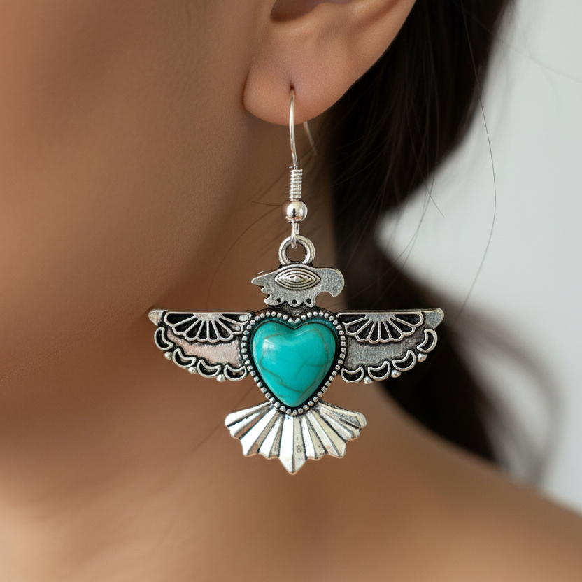 Macro close-up of New Thunderbird Calling Earrings from angle