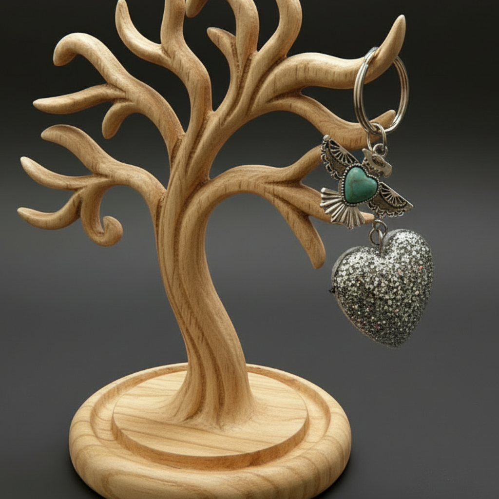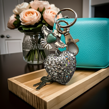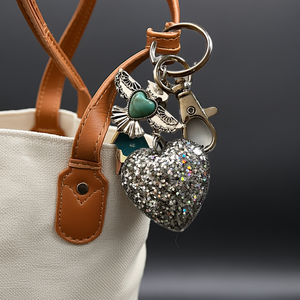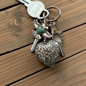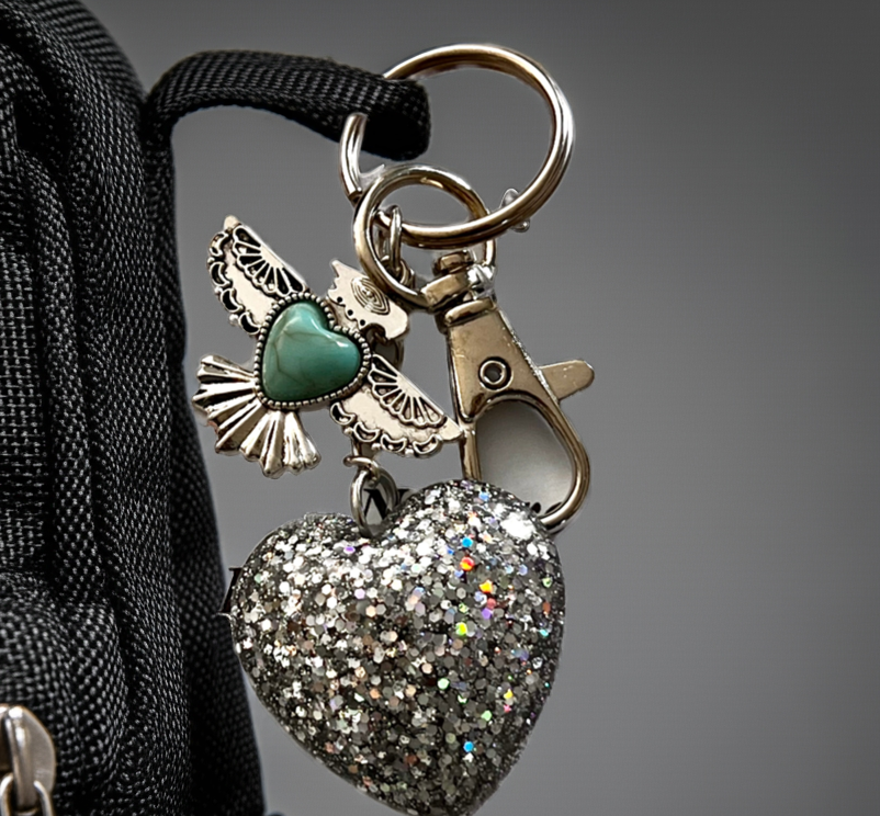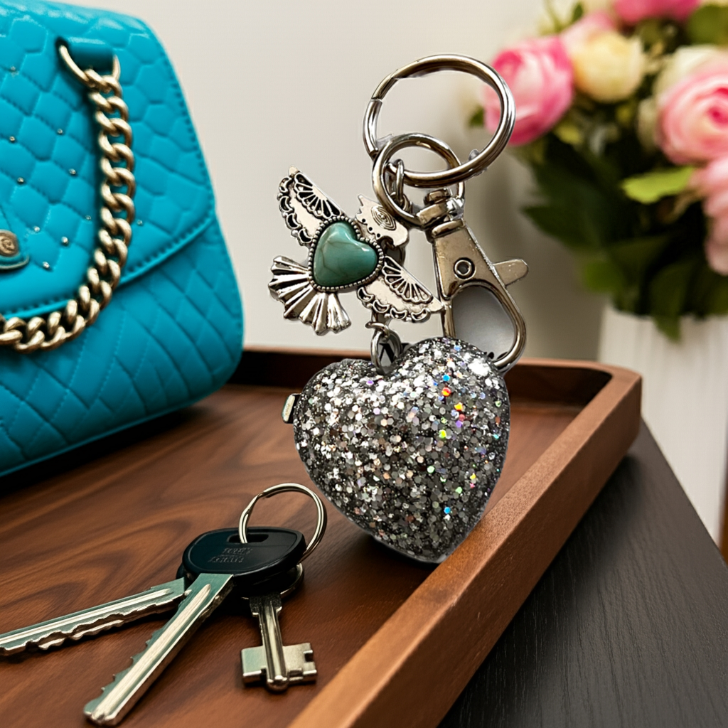 Silver Heart Thunderbird Keychain - Handcrafted Charm