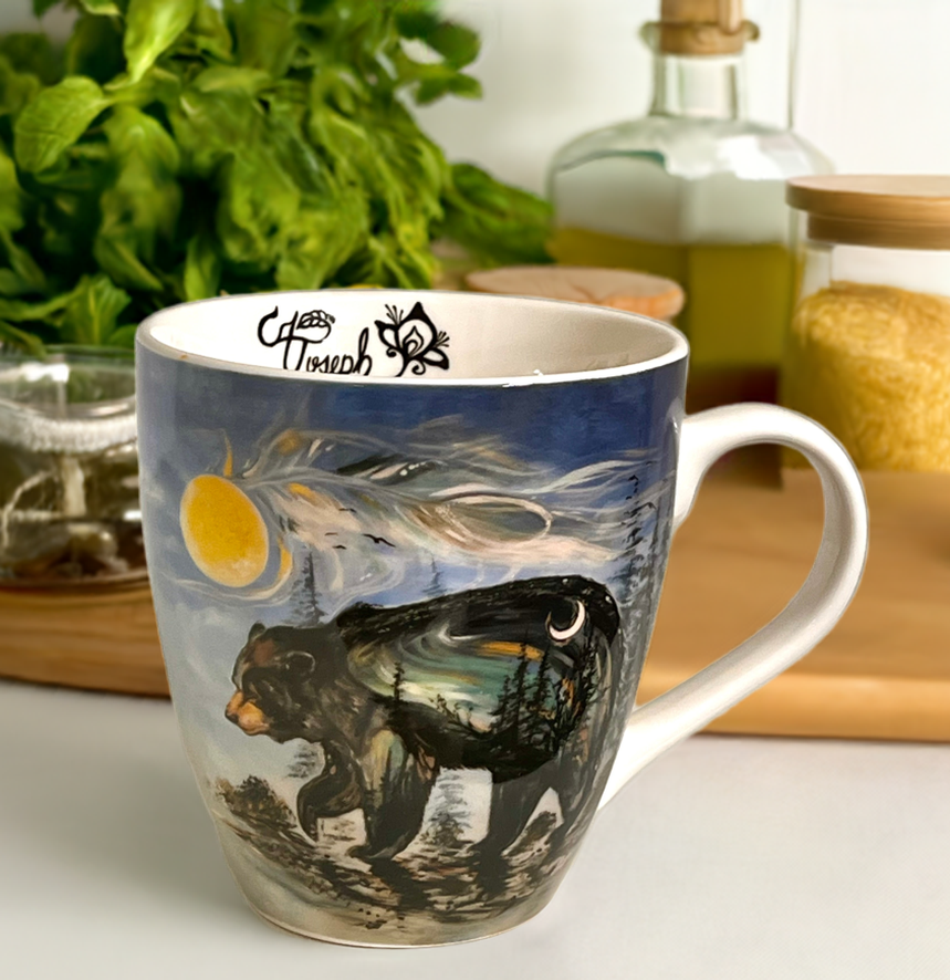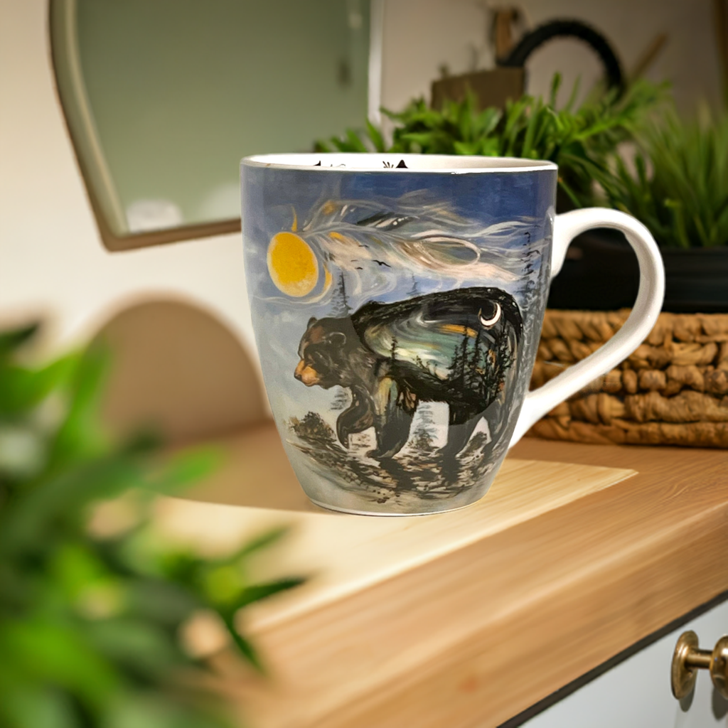 Indulge in a luxurious coffee experience with our NEW 18 oz Signature Mugs - A Bear's Journey. Crafted from Fine China and adorned with the artist's signature, these mugs come in a gift box with an artist bio. Microwave and dishwasher safe, each purchase supports the artist with a royalty. Designed in Canada, elevate your morning routine with these exclusive mugs.