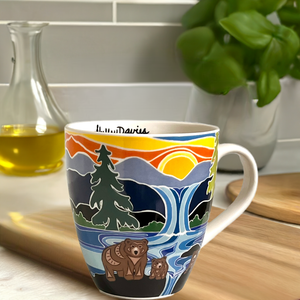 Enhance your daily coffee experience with our 18 oz Fine China Mug - One Last Swim. Handcrafted in Canada, each mug showcases genuine Indigenous designs and supports artists through royalties. Microwave and dishwasher friendly, each mug is elegantly presented in a gift box with an Artist Bio & Portrait and adorned with the artist's signature on the interior.