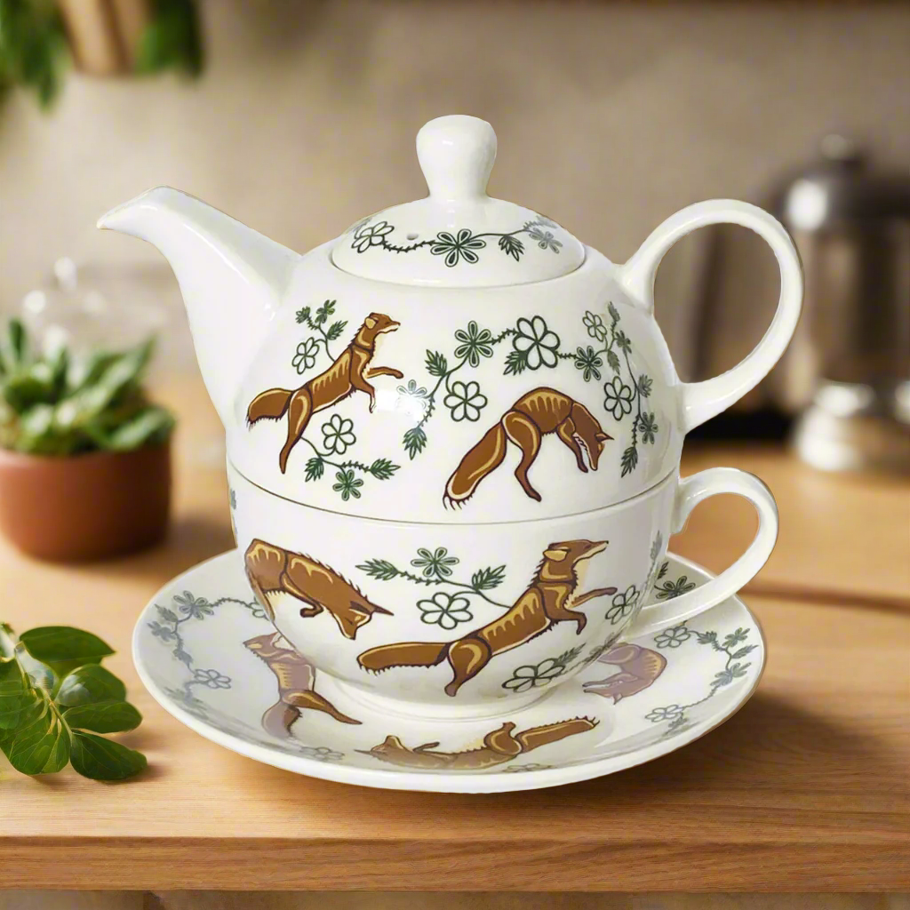 Elevate your tea ritual with our exquisite Matriarch Bear Tea for One Set. This refined ceramic ensemble showcases authentic Indigenous artistry, meticulously crafted with a 13oz teapot that nestles perfectly with its complementary 8.5oz teacup and 6" saucer. The sophisticated design offers both aesthetic pleasure and practical storage. Presented in an elegant colored box, this distinguished set makes a thoughtful, culturally significant gift for the discerning tea enthusiast.