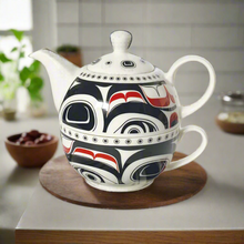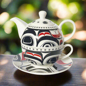 Elevate your tea ritual with our exquisite Matriarch Bear Tea for One Set. This refined ceramic ensemble showcases authentic Indigenous artistry, meticulously crafted with a 13oz teapot that nestles perfectly with its complementary 8.5oz teacup and 6" saucer. The sophisticated design offers both aesthetic pleasure and practical storage. Presented in an elegant colored box, this distinguished set makes a thoughtful, culturally significant gift for the discerning tea enthusiast.