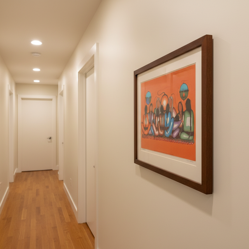 Teaching poster in wood frame in living room