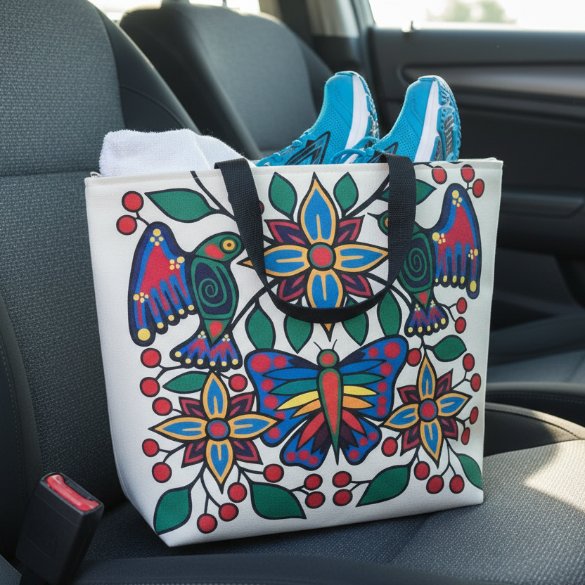 These authentic indigenous art tote bags are expertly crafted to be both stylish and functional. Made with durable canvas and featuring a generous size of 20 x 15 x 6, our tote bags are perfect for everyday use. With a fully lined interior, inside pocket, and zipper closure, they provide plenty of storage space and convenience. Plus, with each sale, the artist or copyright holder receives a royalty, supporting their work and culture.