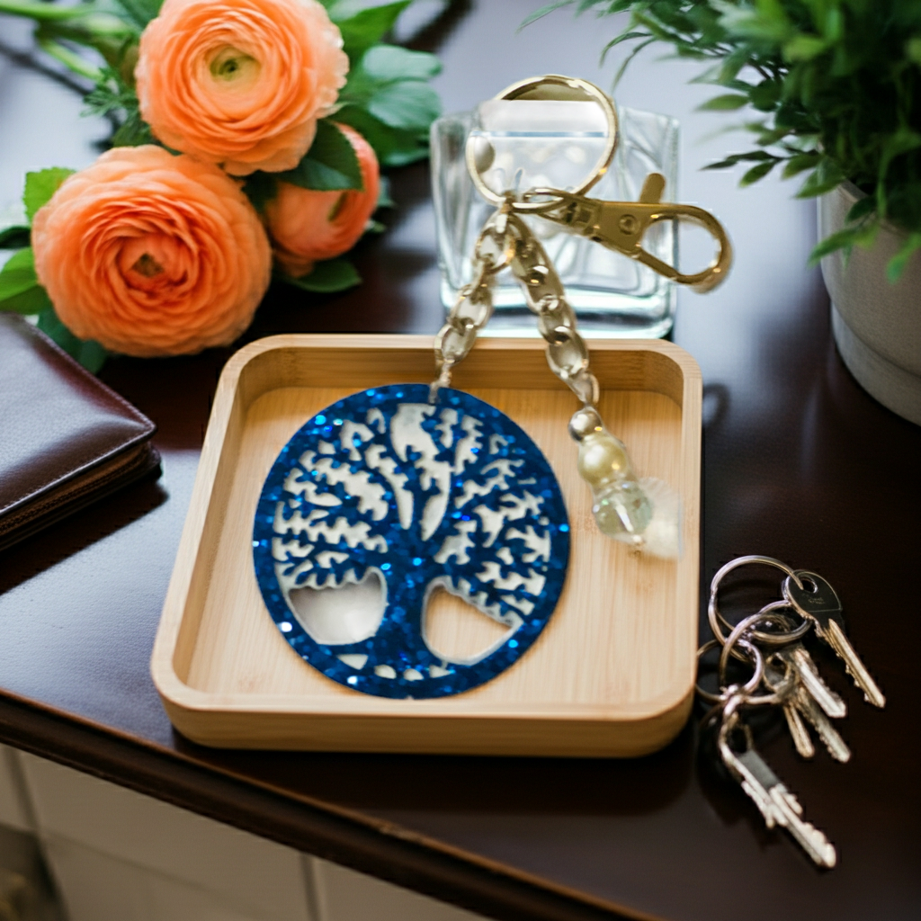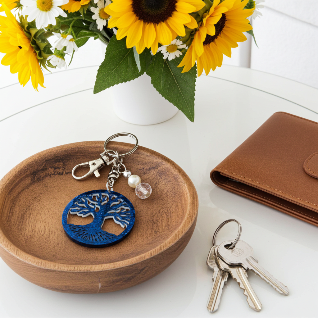 Tree of Life Royal Blue Keychain - Handcrafted Epoxy Resin Charm