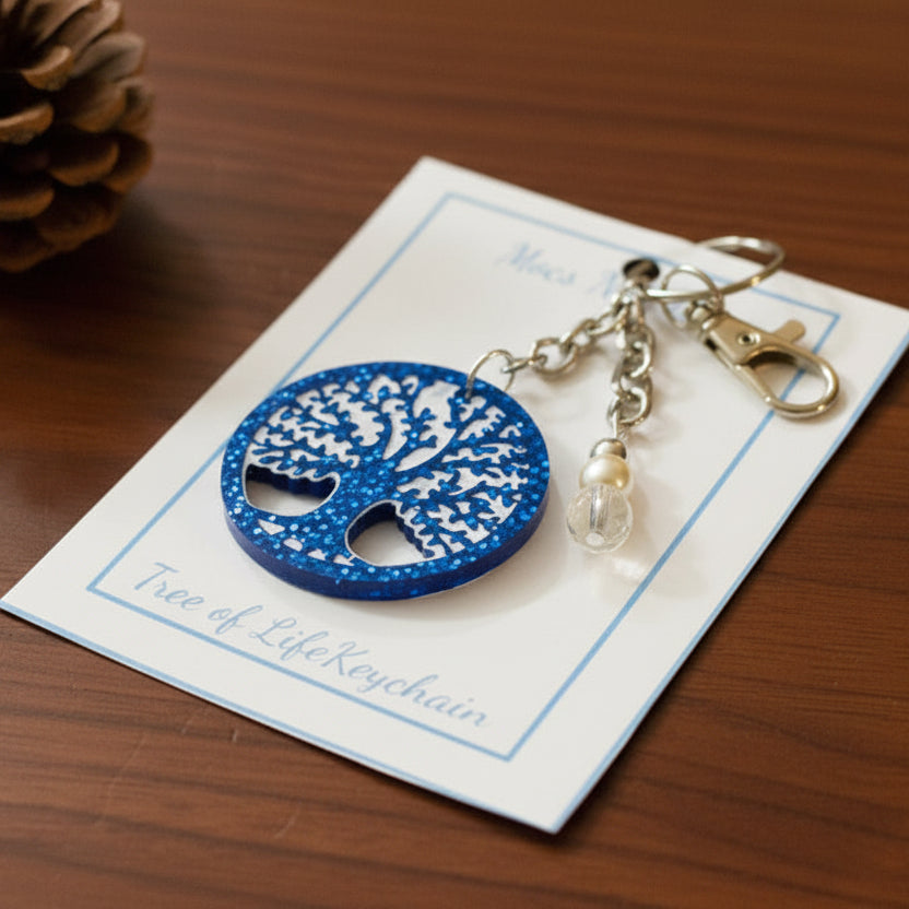 Carry a piece of artistry with you every day. Our handmade Tree of Life keychain features premium epoxy resin in a mesmerizing royal blue with shimmering sparkles, creating a unique accessory that catches the light beautifully.