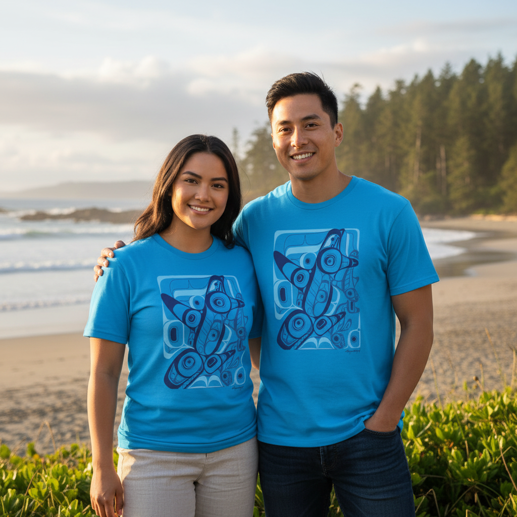 Wear the spirit of the Orca with pride. Each shirt celebrates Indigenous artistry, ocean heritage, and supports the artist directly.